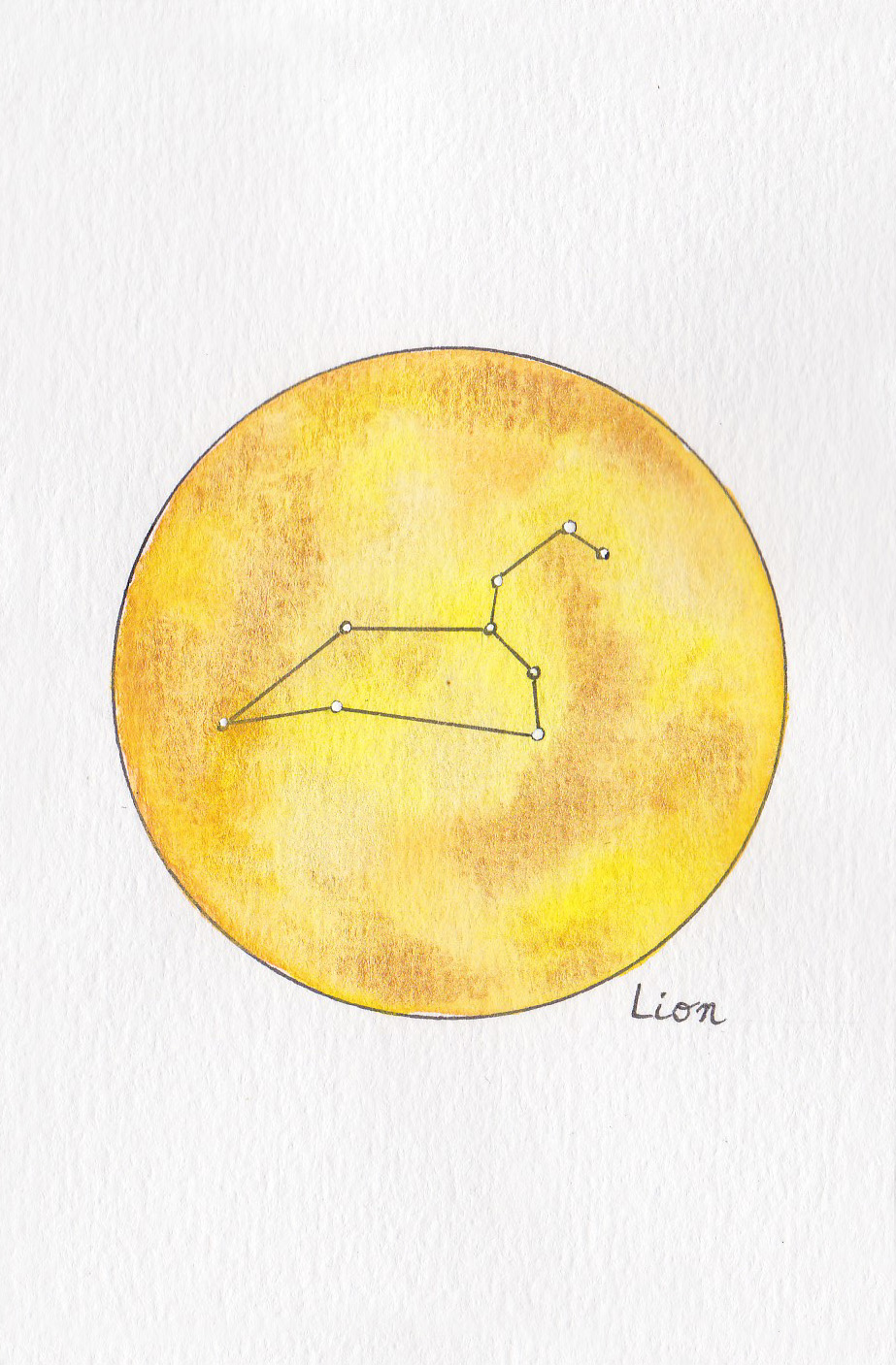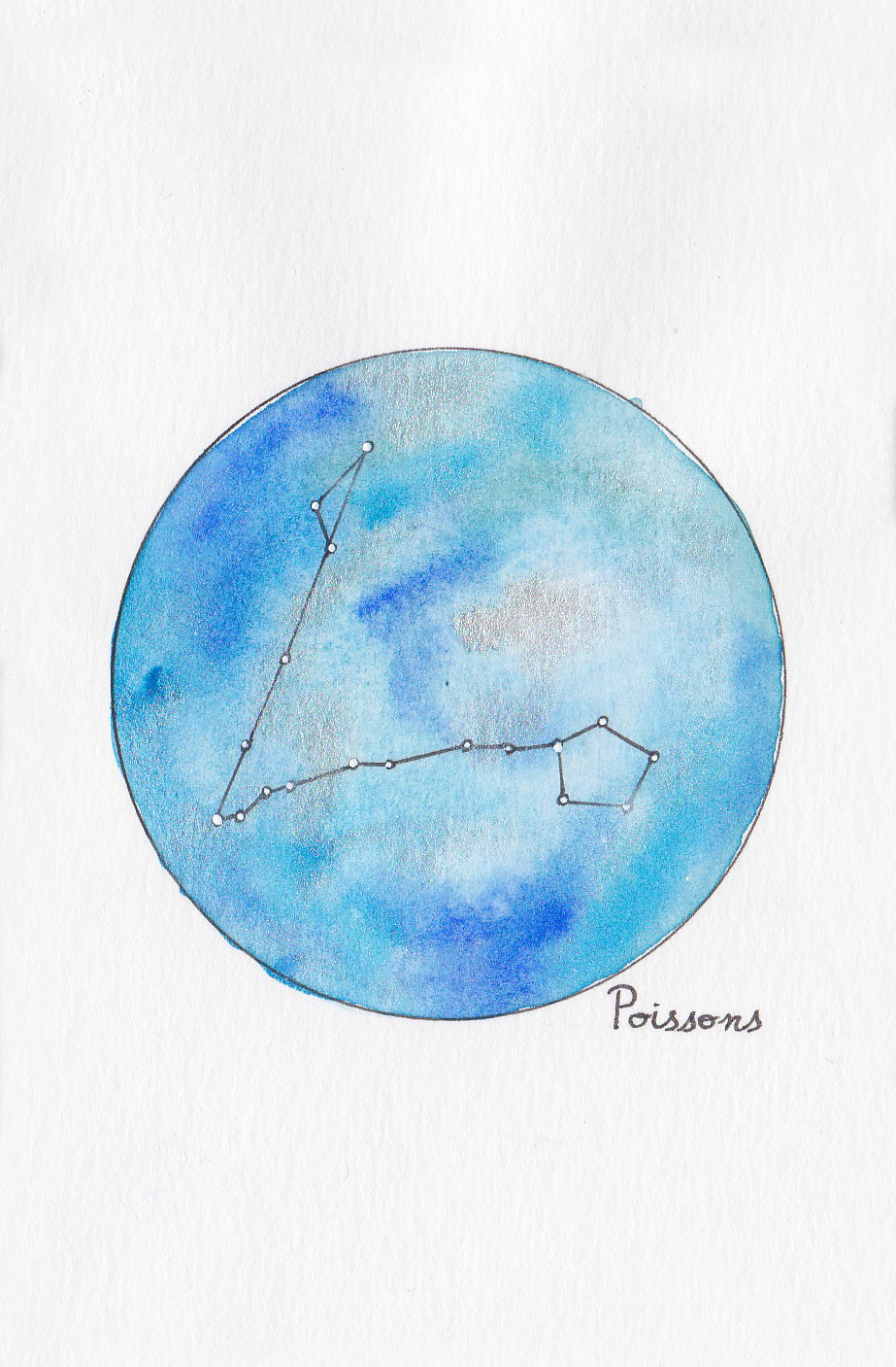 Ce sont de petites cartes au format 7×10 cm de papier aquarelle où je viens dessiner la constellation du zodiaque que vous souhaitez.