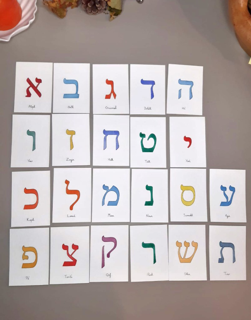Demande de création d’un oracle de lettres hébraïques avec des couleurs spécifiques.